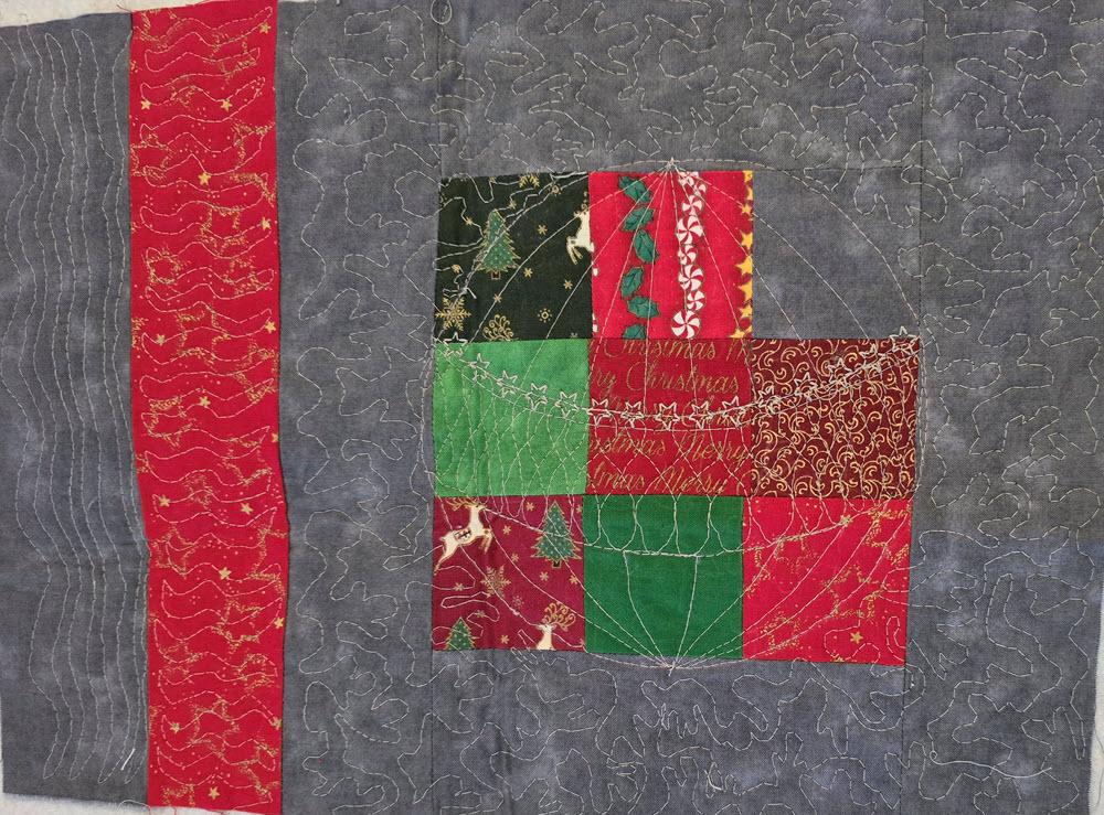 The centre panel was quilted with gentle waves, while the other panels were line-quilted.