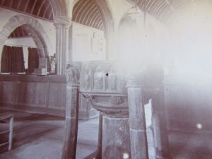 Carved & colored pulpit & screen Harberton Church in Totnes Devon